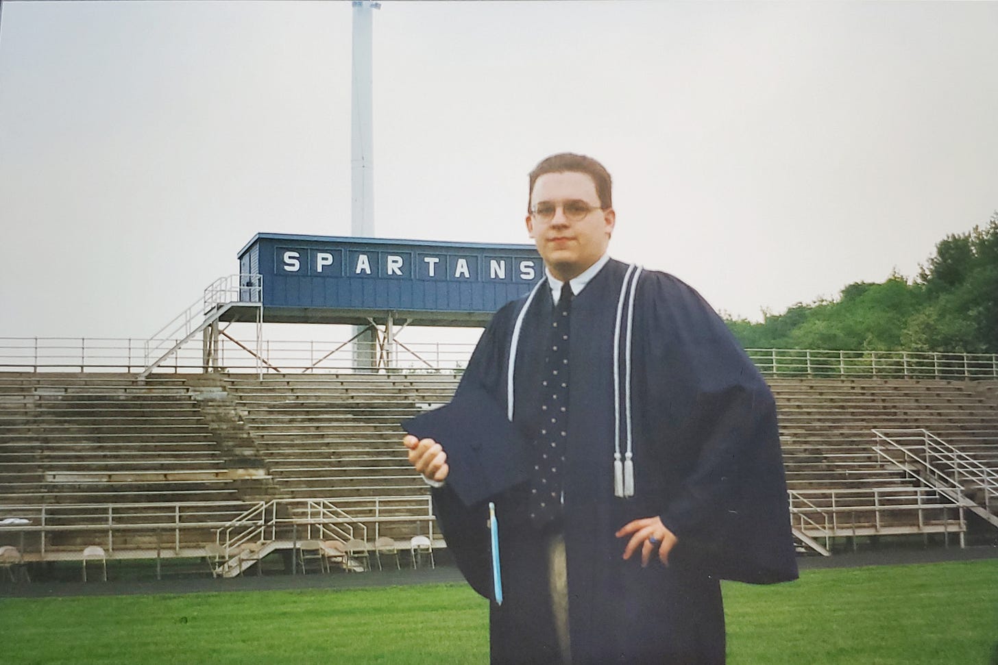 Yet, as I say all of these things to you, I look at the photos of that day in June 1996, seeing the people I thought it was important to have photos with (or could find in the post-ceremony chaos), noting who is conspicuous by their absence. There is no way that the version of me standing on that field would have believed any of this. He believed in his ability to control things beyond his control far too much. He believed that he knew exactly the path his life was going to take. He would not have wanted to hear a teacher, no matter how well-intentioned, telling him that life is a complex series of changes. He couldn’t have believed it. But that’s OK. Because he’s a 17-year-old in a state of liminality. The rites of passage that still lay before him will change him, for the better in most ways, for the worse in superficial ways. But he eventually would have come around to the idea that the older guy was happy, and at some point, in that nascent twilight right before one truly falls asleep at night, he would have been comforted by it. I think. Well, really more, I hope it is true. I can’t know.